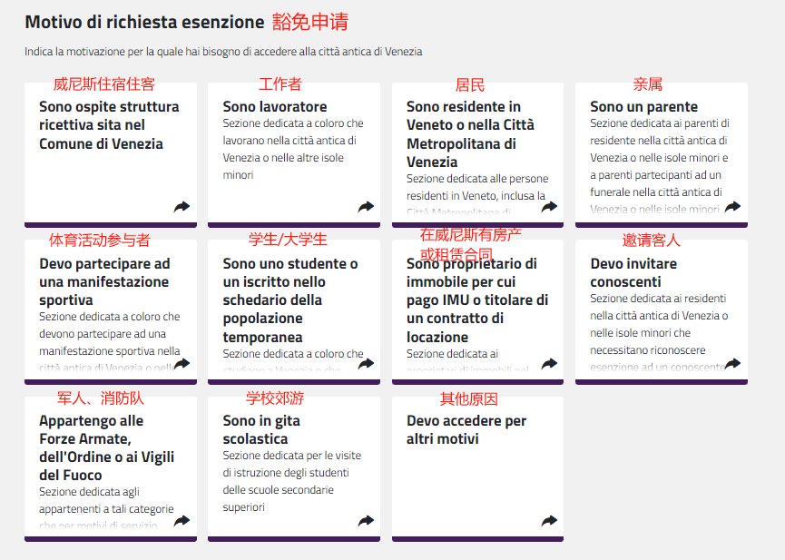 豁免请求链接:https://cda.comune.venezia.it/it/home