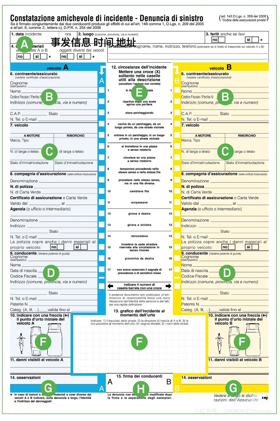Diritto di precedenza = 先行权 所以17.可以理解为 对方没有看到红灯或是享有先行权的路牌