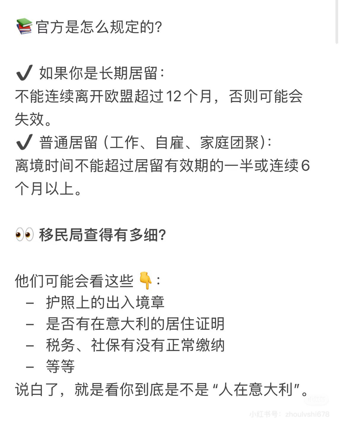 🗓 每12个月一定要至少回意大利一次,最好不要一次走太久