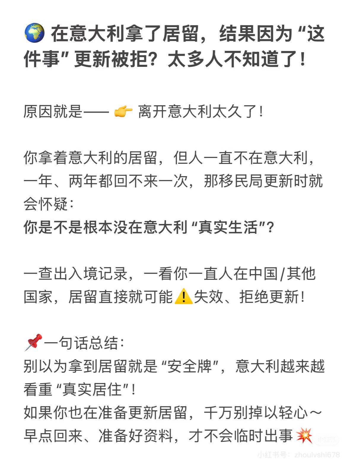 🌍 在意大利拿了居留,结果因为“这件事”更新被拒?太多人不知道了!